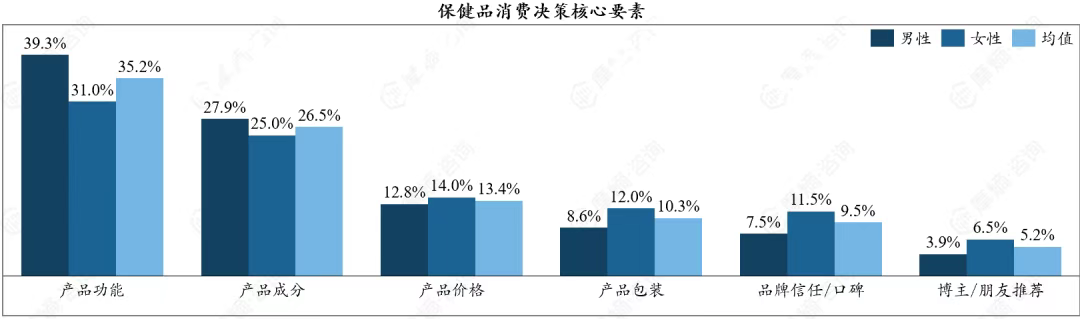 保健品消费决策正转向理性消费,女性消费者对感性因素的敏感度比男性更高。