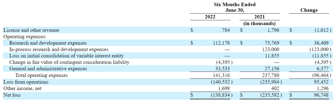 下图为2022年上半年Relay Therapeutics经营概况: