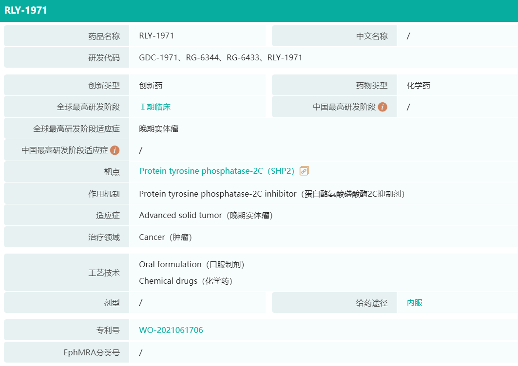 SHP2抑制剂RLY-1971/GDC-1971: