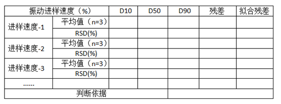某原料A,可选择干法进行粒度测定,首先选择合适的振动进样速度与进样间隙:通常选择能连续稳定进样的进样速度与间隙搭配,可进行多次测量选择平均值。