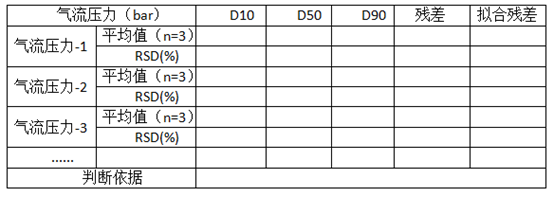 其次根据样品分散的难易程度,选择合适的气流压力,气流压力可进行考察,根据数据趋势选择合适的分散压力。