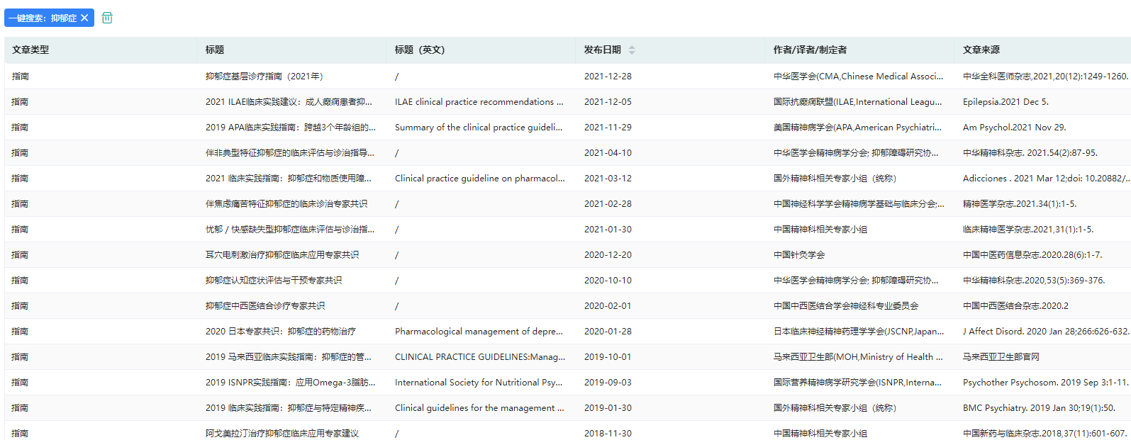 抑郁症临床诊疗指南(部分)