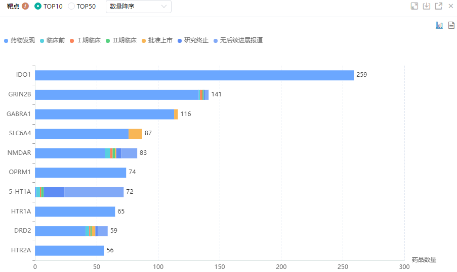 抑郁症研发药物热门靶点TOP10