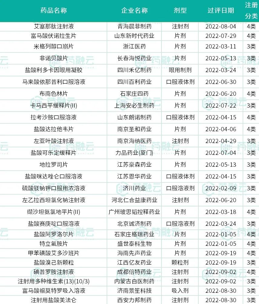 注:本文数据由药融云手动统计、整理,统计时间截至于2022年9月30日。