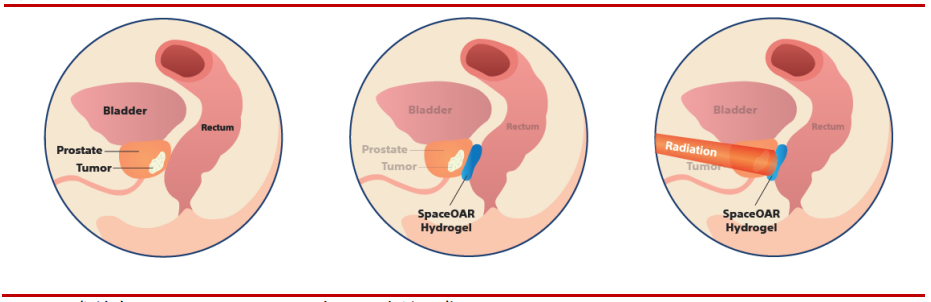 放射治疗的组织隔离是聚乙二醇凝胶产品的前沿应用领域。用放射疗法治疗癌症患者时,通过在组织间注射聚乙二醇凝胶,可以实现不同组织间的隔离,从而有效减少达到其他健康组织的辐射剂量,在杀伤癌细胞的同时能避免放射线对周围健康组织的损害。波士顿科学旗下Augmenix, Inc.生产的SpaceOAR于2015年上市,是美国首个应用于前列腺癌放射治疗的组织隔离产品,凝胶以水针剂形式存在,注射后可迅速在前列腺和直肠间形成固体凝胶,将器官彼此推开约1.3厘米,产生的额外空间可降低前列腺放疗期间可能影响直肠的辐射剂量,进而降低了直肠损伤的风险。临床研究表明,SpaceOAR可将接受高剂量放射治疗的患者的直肠粘膜损伤由90%降低至13.6%。在为期三年的随访中,在放疗前接受SpaceOAR的患者出现辐射晚期毒性或直肠损伤的现象减少73.5%。