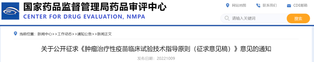《肿瘤治疗性疫苗临床试验技术指导原则(征求意见稿)》