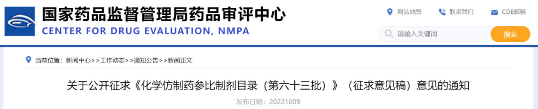 《化学仿制药参比制剂目录(第六十三批)》(征求意见稿)
