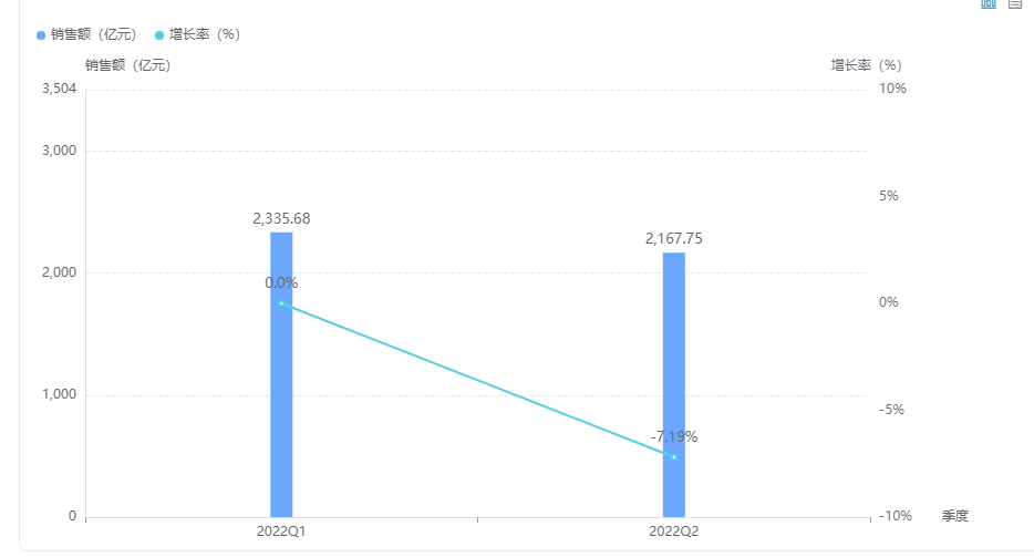 随着医药市场持续波动,2022年Q2全国医院药品销售额达到2168亿人民币,受疫情影响,与第一季度相比,呈现下降趋势,降幅为7.18%。2022上半年整体销售额为4503.43亿元,预计全年销售额将有望达到万亿。