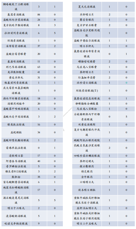 中国眼科各药品生产厂家数量(部分,想要获取完整生产厂家信息,请前往药融云数据库进行查询)