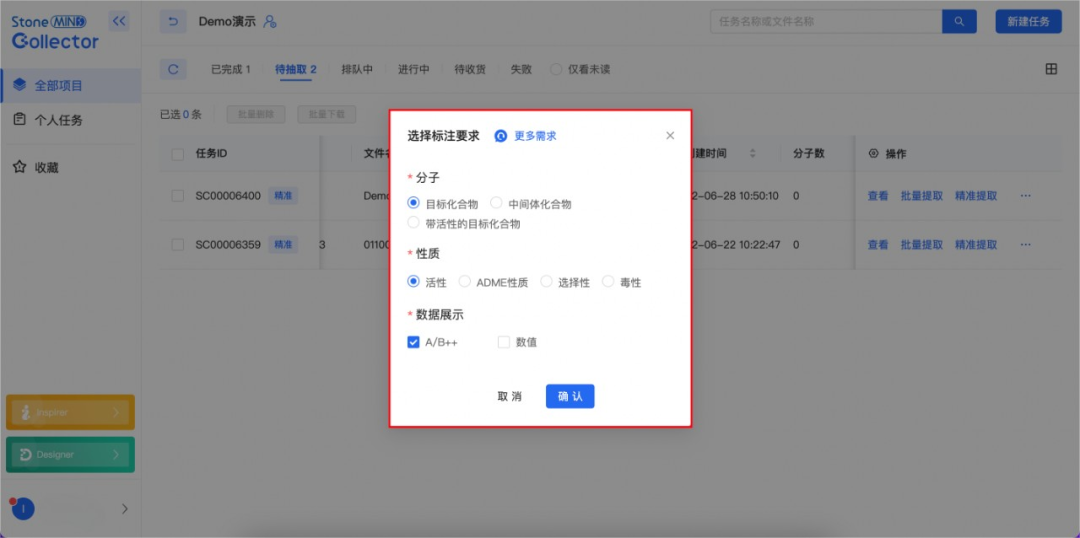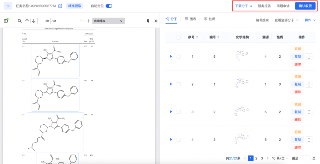 Collector通过先进的AI技术快速提取专利、文献中的化学结构式,大大节省了时间和人力。但由于专利或文献中的数据类型众多,比如活性数据等,大家对数据的需求不尽相同,很难以一个统一的标准化方案来解决大家所有的问题。