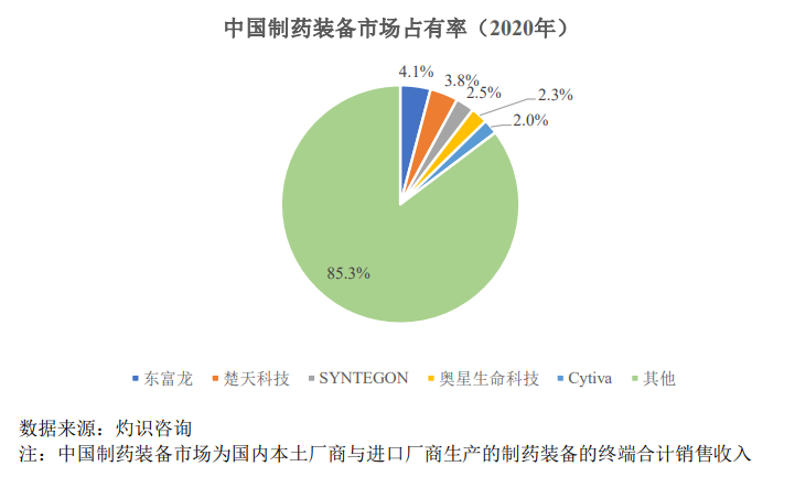 国内,随着市场需求的扩大,国外制药装备厂商纷纷加大了在中国市场的投资规模与销售力度,凭借其在资金、人才、设备、技术、研发等方面的优势,占据了国内高端制药装备的主要市场份额。而经过数十年的开拓和积累,中国制药装备行业逐步形成了一批以东富龙、楚天科技等为代表的,具有较强研发能力、拥有自主知识产权和较强竞争力的制药装备厂商。