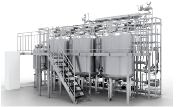 主要由药液配置系统、储液、过滤系统、管道阀门系统组成,同时集成在线清洗和灭菌系统,实现药液的自动配置和输送、产品收集等,具有自动化和模块化等特点。