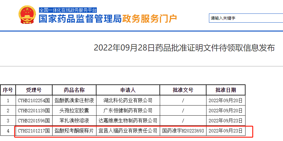 7月,人福药业递交氢吗啡酮缓释片上市申请获得受理,该产品为人福医药独立研发的化药3类药,为国内首仿药,此次申报生产的规格为:4mg、8mg、32mg。值得一提的是,目前国内盐酸氢吗啡酮仅有注射剂上市,且为人福药业的独家品种,2021年院内销售额近5亿元,市场可观。