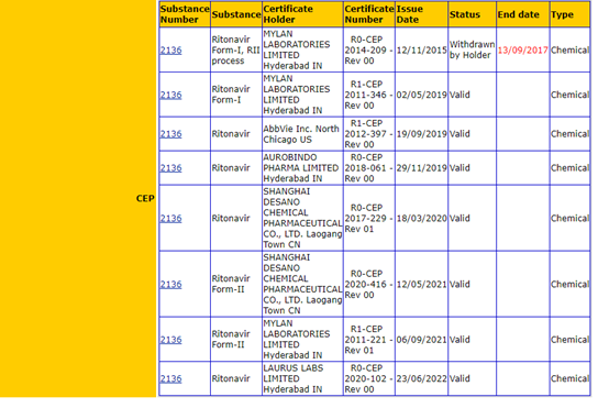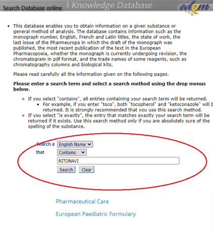 第二步,输入要查询的药品名称,同样以RITONAVI为例: