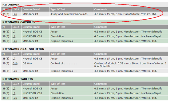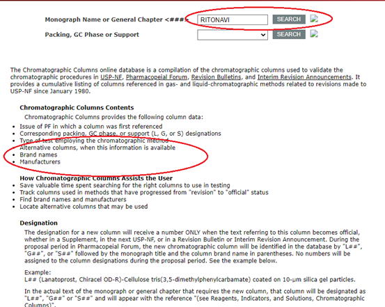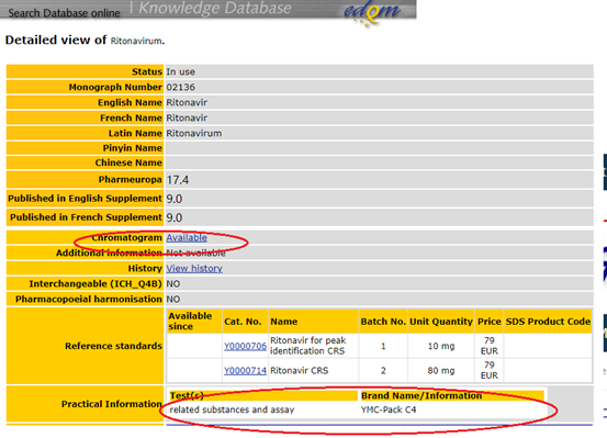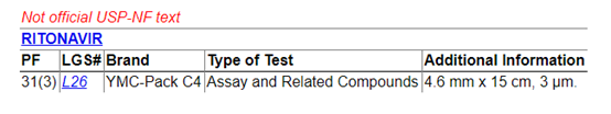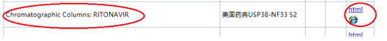第三步 在查询到的结构中,下拉找到“Chromatographic Columns: RITONAVIR”信息点开后面的网址即可。
