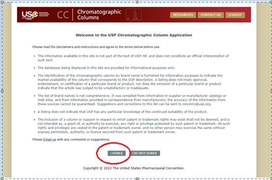第一步登录“”https://apps.usp.org/app/USPNF/columns.html”,并选择“I agree”。
