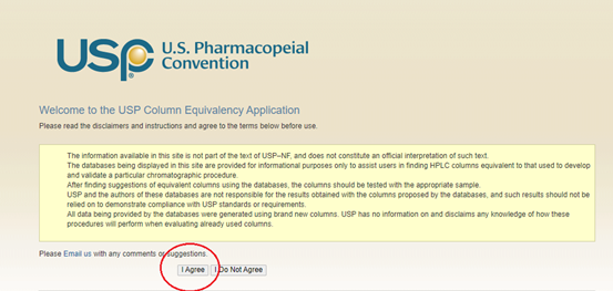 第一步:登录网站“https://www.uspchromcolumns.com”。点击“I agree”,进入搜索界面