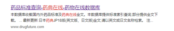 第一步,在任何一个搜索引擎上搜“药典在线”(也可以输入网址https://www.drugfuture.com/standard/)点击“药品标准查询-药典在线-药物在线数据库”