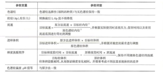 大多数情况下,USP和EP所推荐的色谱柱都是可以有效使用的,但有时候可能没有完全相同的色谱柱,这时我们优选使用相同厂家、品牌和填料,仅仅是规格不同的色谱柱进行替换,替换方法如下(来源:《中国药典分析检测技术指南》):
