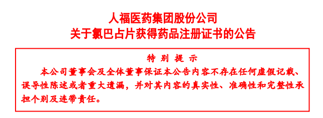 2022年10月22日,人福医药首款国产氯巴占仿制药在全国上市。