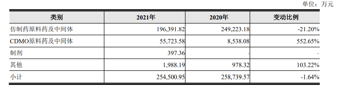 2021年天宇股份的仿制药原料药及中间体实现收入196,391.82万元,较上年同期收入249,223.18万元下降21.20%。主要原因系①沙坦类原料药及中间体市场价格下降、人民币汇率升值;②部分中间体产品转移场地重新布局及下半年停电或限电影响产能等因素造成较上年同期销售额下降,其中原料药销量比去年略有下滑,中间体销量较去年同期下滑19.87%。