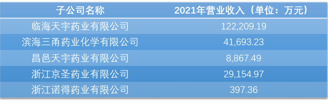 截止2021年12月31日,天宇股份共拥有6个子公司,2021年其主要子公司营业收入情况如下: