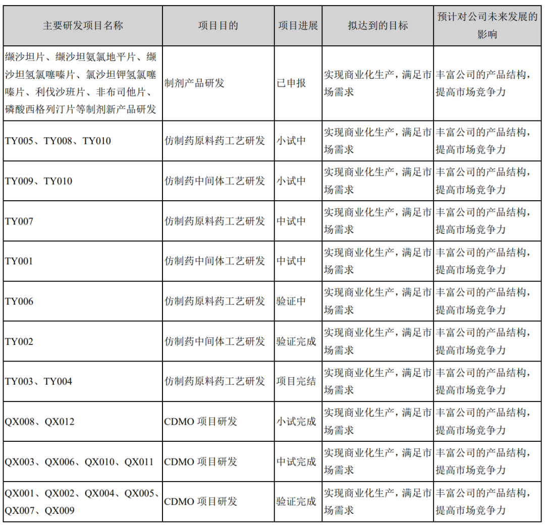 2011年以来,天宇股份凭借在医药中间体和原料药领域多年累积的生产经验、研发经验及创新能力,通过对国内外新药发展趋势和市场规模的研判,公司开始布局口服抗凝药物、降血糖药物和抗心衰药物3大类药物系列的研发,口服抗凝药物包括Xa因子直接抑制剂(阿哌沙班、利伐沙班、依度沙班)、直接凝血酶抑制剂(达比加群酯)、血小板聚集抑制剂(替格瑞洛),降血糖药物包括二肽基肽酶IV(DPP-4)、抑制剂(磷酸西他列汀、维格列汀、利格列汀)、钠-葡萄糖协同转运蛋白2(SGLT2)、抑制剂(恩格列净、卡格列净、达格列净),抗心衰药物包括依伐布雷定和LCZ696等。