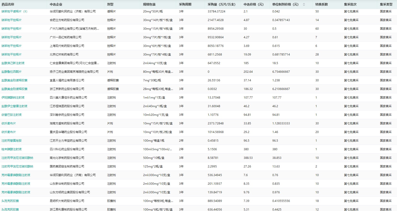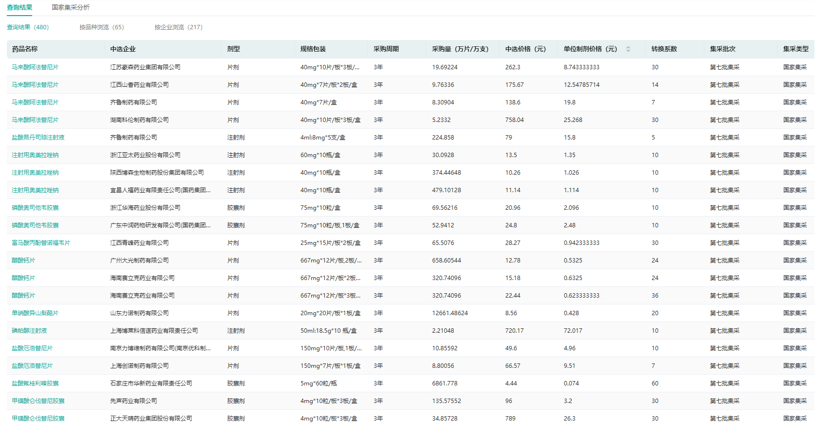 更多国家集中采购药品报量、中标以及供应的信息(药品名称、最小单位价格、规格、剂型、报量、各省供应量等多个维度信息),请登录药融云数据库(vip.pharnexcloud.com/?zmt-mhwz)进行全面查询。