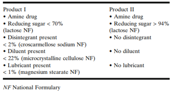 一般而言,重要的标准是辅料在制备药物产品的整个保质期内保持惰性。然而,根据活性药物和辅料化学结构中的功能,它们可能会发生相互作用。乳糖是一种还原糖,因此可能与含有伯胺,仲胺基团的化合物发生美拉德反应。美拉德反应的反应性可能因浓度和其他条件而异。许多产品已成功地用乳糖配制而成,并且已被证明是稳定的。例如,群多普利是一种仲胺,与多种辅料(包括乳糖)具有热稳定性。与乳糖一起成功配制的产品的另一个例子是普瑞巴林,一种伯胺,硬明胶胶囊制剂,其中乳糖一水合物作为非活性成分。