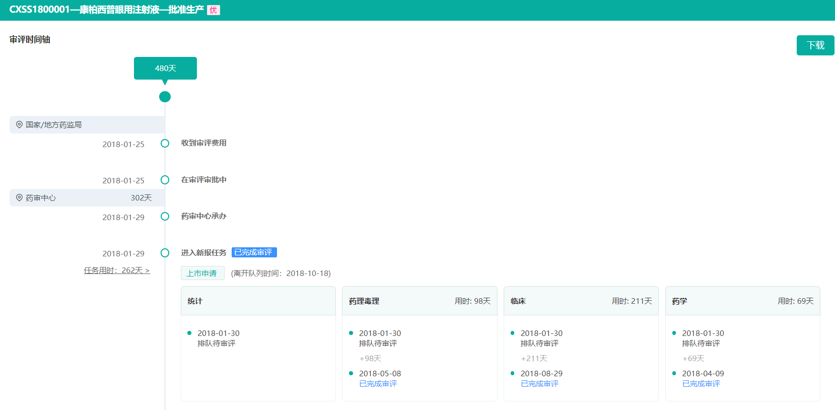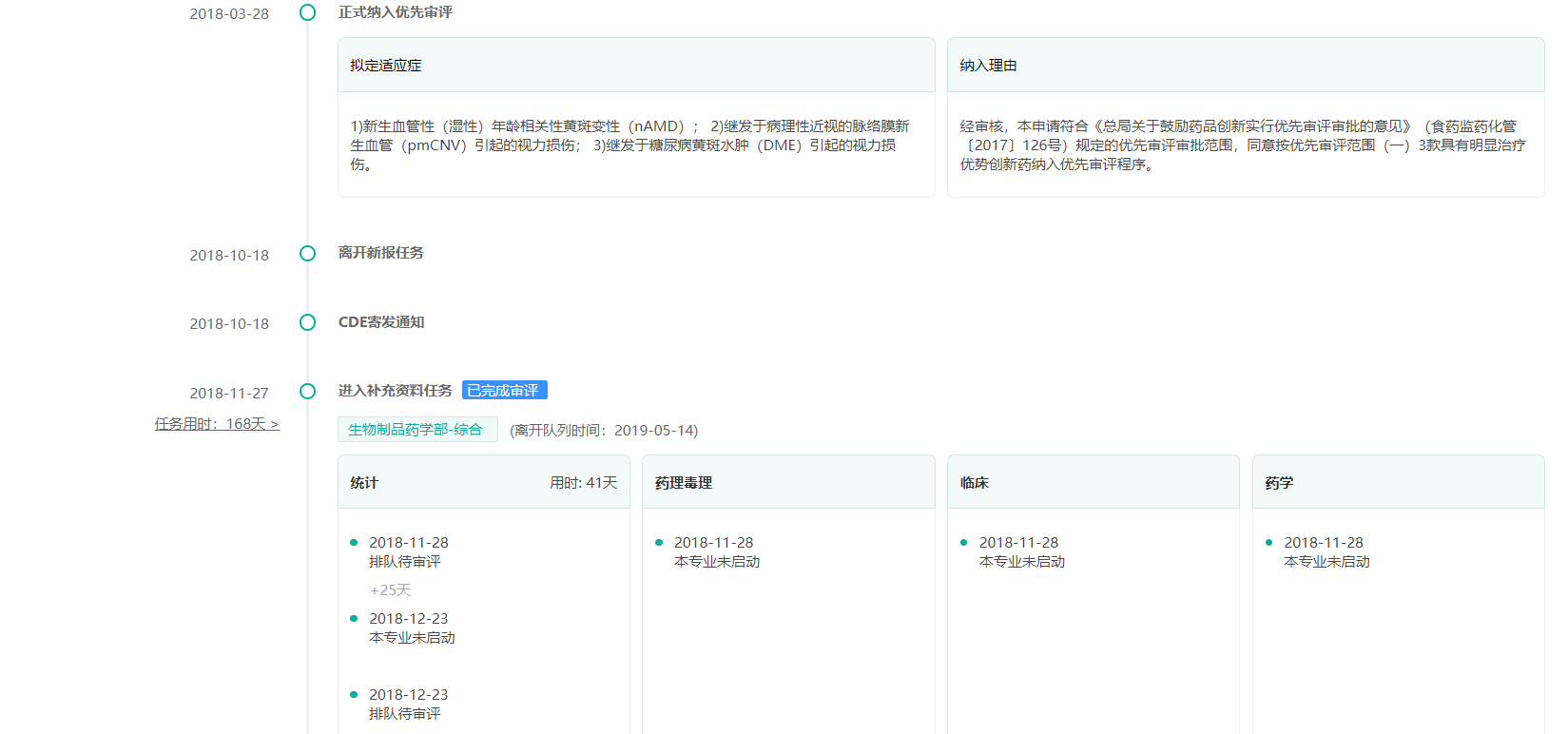 康柏西普药品审评时间轴(部分,点击查看完整审评过程,或登录药融云官网自行查询)