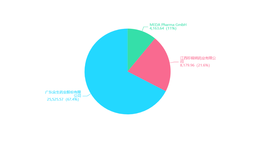 由图可见,成都康弘药业无论是从营业收入、净利润收入,还是从研发投入、销售费用来看,金额都是最多的,且遥遥领先。另外三家眼科上市公司在净收入上非常接近,均超两亿。另外值得说的是,从上图对比来看,康弘药业今年在研发上投入特别多,相比第二的众生药业多出将近9亿元,但在收入上也领先近12亿元。