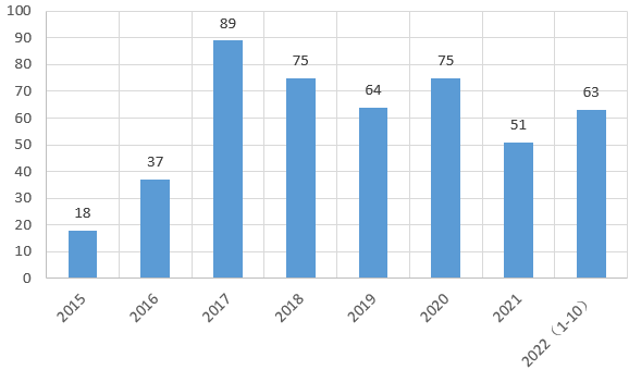 2022年1-10月,我国仿制药企业在美国市场获FDA批准的ANDA批文已有63个(不包括暂时性批准,下同),已经超过了2021年的51个,将进入二次高位。
