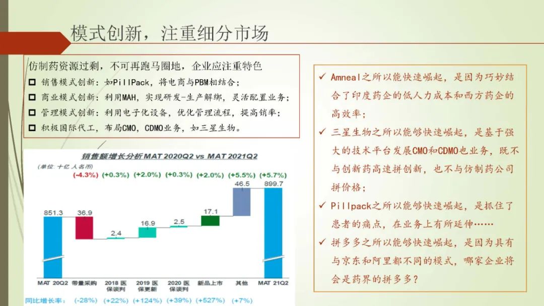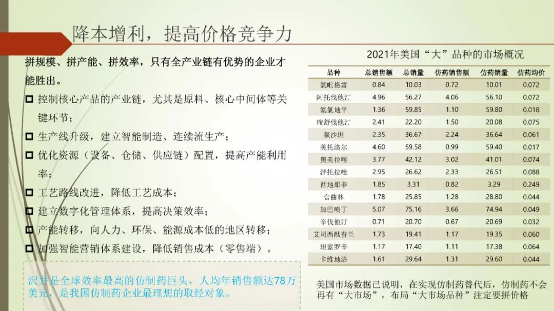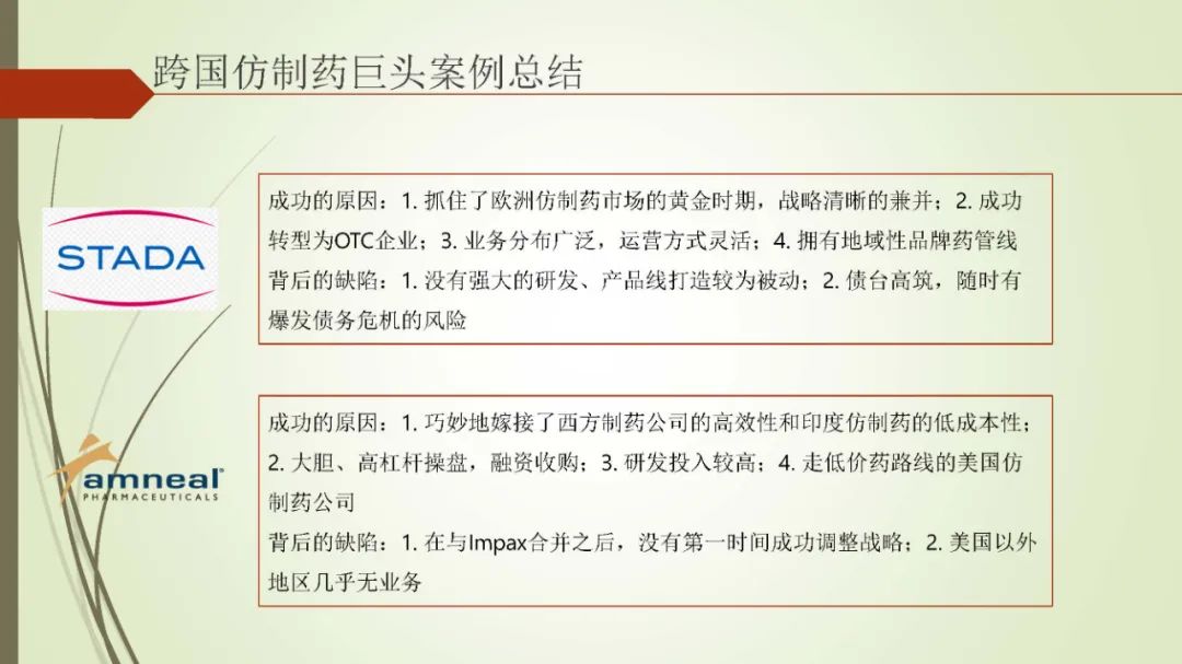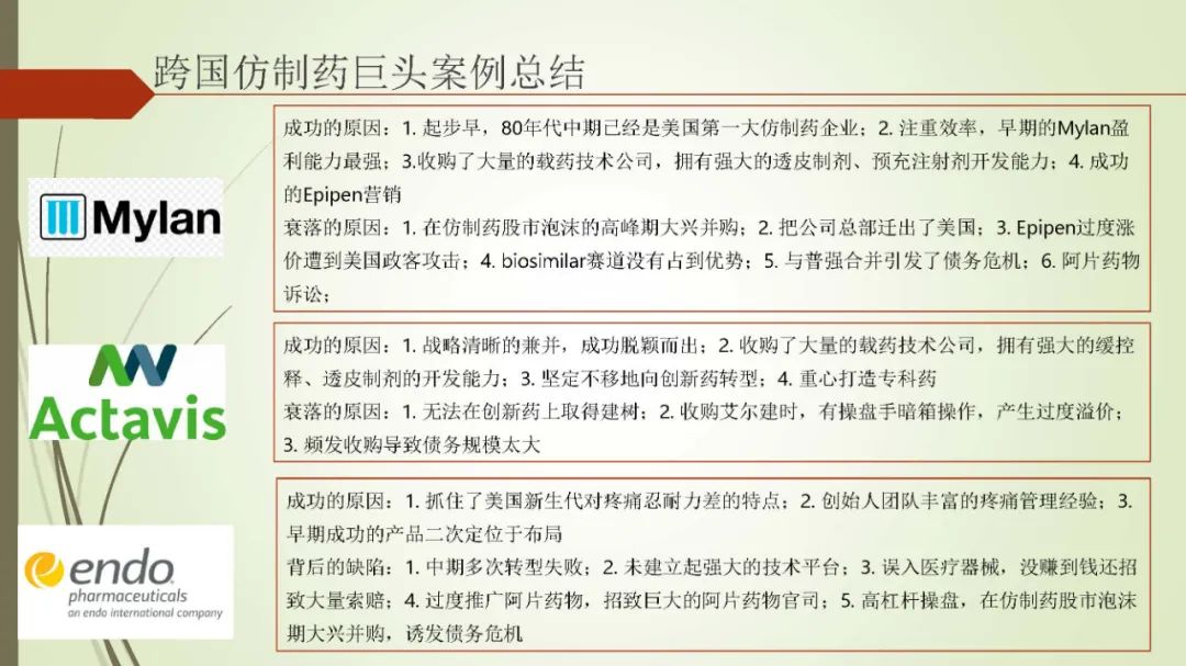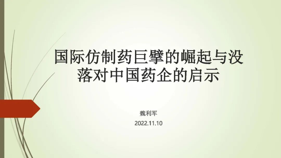以下内容为魏利军在中国医药企业管理协会(部分)和中国医药制造与设备协会线上报告的PPT。内容为其新书《跨国仿制药企业兴衰启示录》(原名仿制药帝国的崛起与没落)的内容概括与总结。内容概括总结为PPT,共由四个部分组成,第一部分是仿制药的顶层逻辑,第二部分为跨国仿制药巨头的兴衰成败原因总结,第三部分是跨国仿制药巨头对我国仿制药企业带来的启示,第四部分为新形势下,我国仿制药企业的转型路径总结。