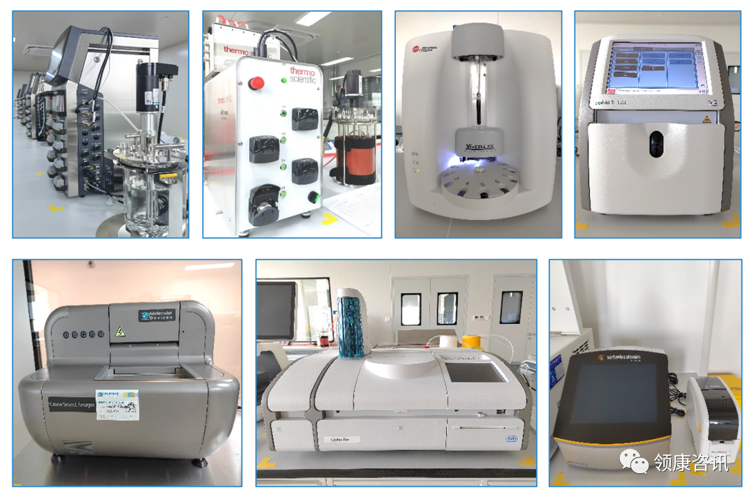 研发实验室配备了种类繁多的各类生产和检测设备,设备数量还在持续增加,如目前已配备Sartorius和ThermoFisher哺乳动物细胞生物反应器(2L*12台)、国产微生物发酵罐(10L*8台)、Roche生化分析仪、Roche血气分析仪、Beckman Vi-cell细胞计数仪、Sartorius 接封管机、完整性测试仪、单克隆拍照设备CSI等。