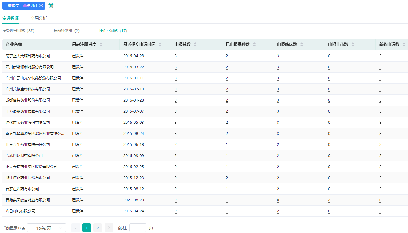 据药融云中国药品审评数据库统计,目前国内将近20家企业已开始布局曲格列汀仿制药市场,涉及石药集团、正大天晴、成都倍特药业、瑞阳制药、豪森药业、通化东宝药业等企业。