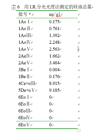 CCl4溶液中不同浓度的硅油溶液被用作标准,胶塞上硅油的定量测定通过对标准曲线的数学修订进行。