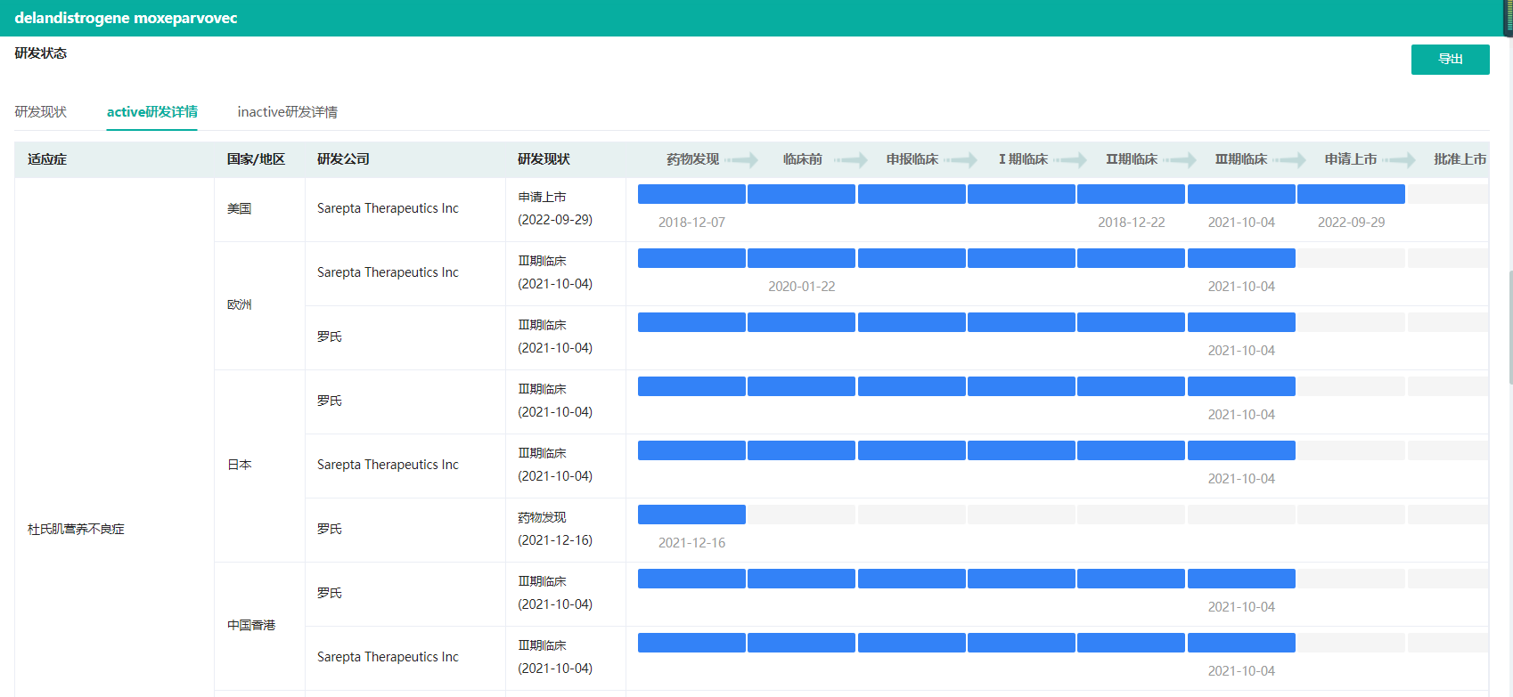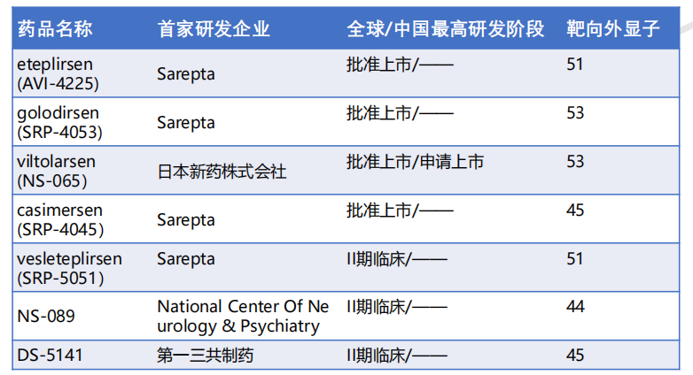 三、药物研发紧锣密鼓,Sarepta成市场领头羊