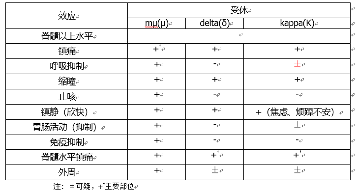 阿片受体因其分布广泛,功能多样,药理作用复杂。阿片受体主要有μ、κ、δ三型。药理研究表明每种受体存在多种亚型,如μ1、μ2、μ3、κ1、κ2、δ1、δ2等。一般,吗啡是μ、κ、δ三种受体的激动剂,对三受体亚型的作用强度依次减弱。