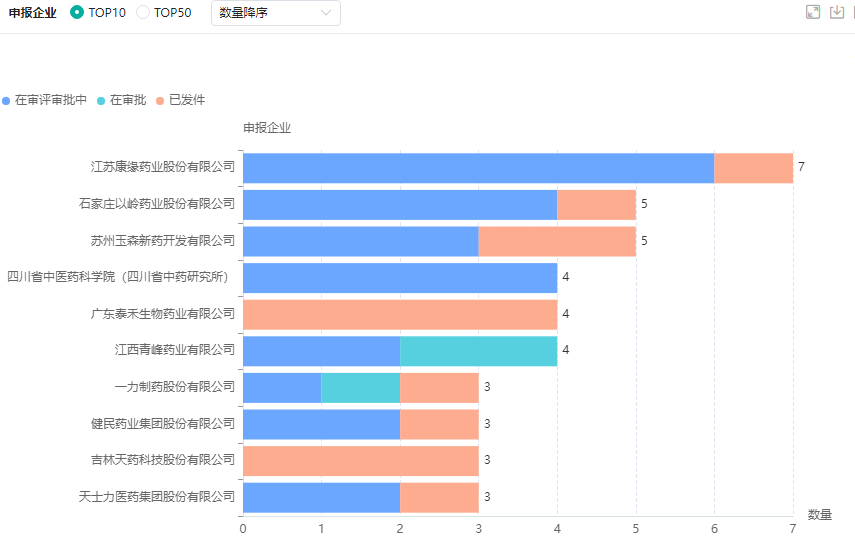 1类中药创新药申报企业TOP10(微信搜索"药融云小程序"进行相关更多数据查询)