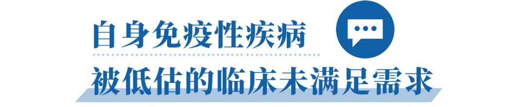 自身免疫性疾病是指机体免疫系统异常地攻击自身功能性细胞、组织或器官,这类疾病几乎可波及身体任何部位。在国内,自免疾病领域的未满足临床需求无疑是被低估的,这类疾病起因复杂、难以治愈,患者对疾病认识不足,专科医生匮乏,药物可及性差,治疗费用高昂,导致大量患者难以得到有效的诊治。