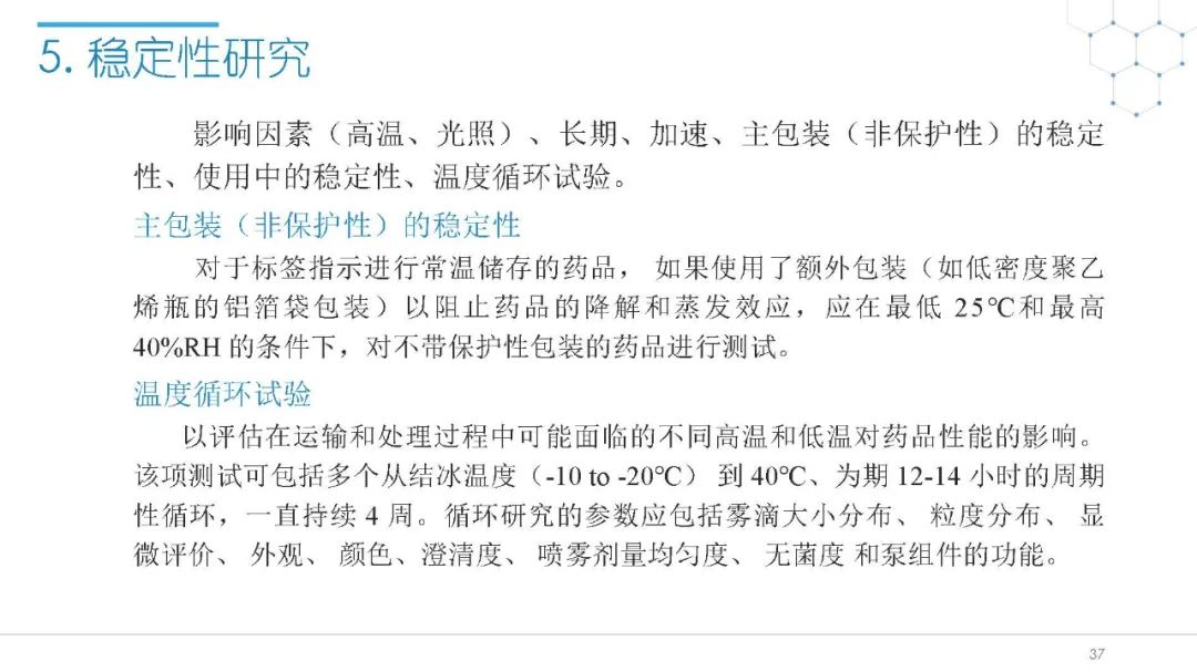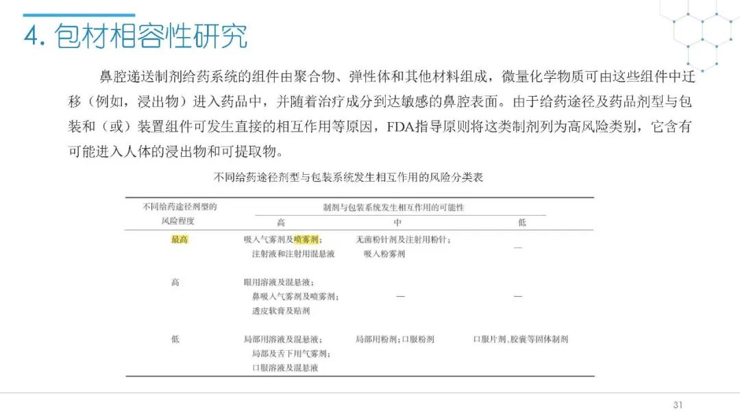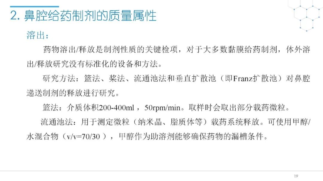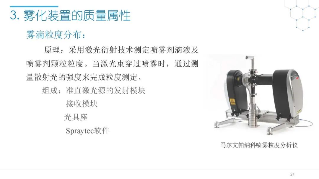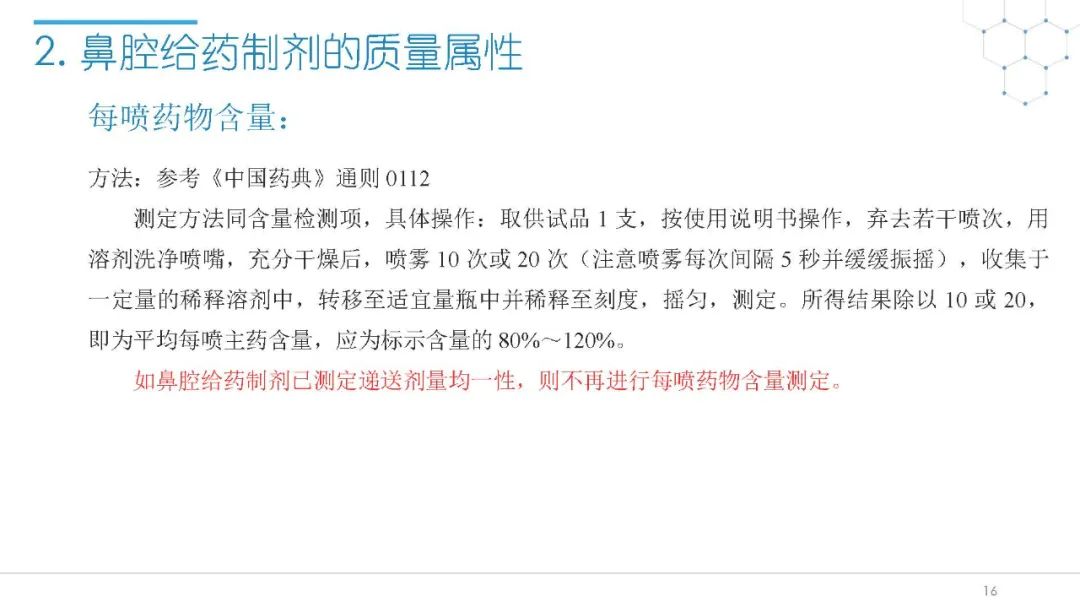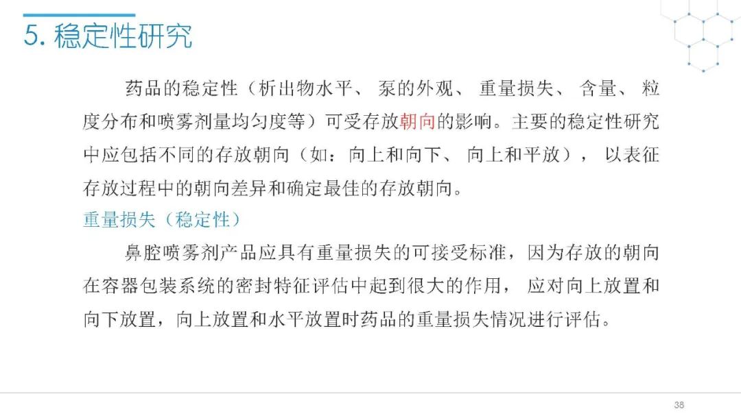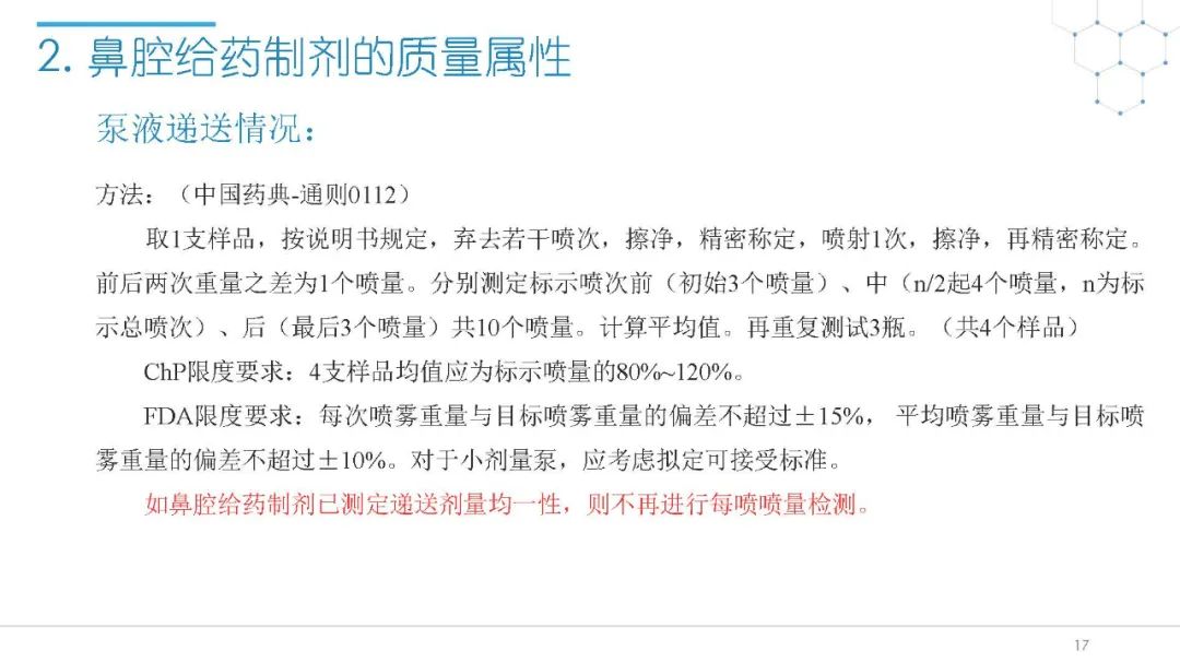 随着国内改良型制剂的发展,越来越多的医药公司把部分研发重心转向开发鼻腔给药制剂。但关于鼻腔给药制剂与传统的口服固体制剂、注射剂的质量研究又存在些许差异,关于这方面的剖析相对较少。本节就鼻喷制剂的分析检测和现有的鼻腔喷雾产品的监管要求进行了回顾与讨论。特别强调了一些关于鼻腔喷雾产品的体外表征和体外群体生物等效性方面的研究,主要包括喷雾模式(SP:Spray Pattern)和气雾形状(PG:Plume Geometry,喷雾几何形状;又称喷雾角度Spray Angle)。此外,还对鼻腔给药制剂的给药装置、特殊检项和控制标准、表征设备和原理(表征方法开发、优化的注意事项:如相机位置、尖端到激光的距离、相机帧速率以及喷雾持续时间)、鼻喷制剂的溶出(包括装置、溶出介质及介质配制)进行了简要介绍。并以实际案例介绍了仿制药开发过程中的喷雾模式(SP)和气雾形状(PG)的对比研究,这也是鼻喷制剂体外生物等效性的研究核心。