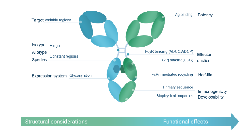 根据靶点类型和作用机制,选择合适的抗体结构和亚型。