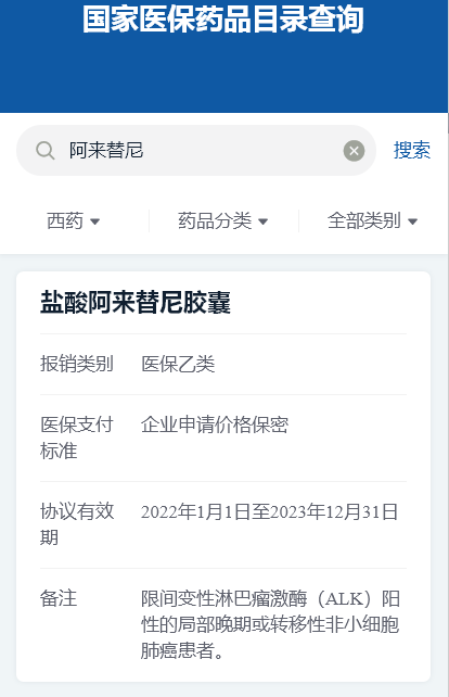 适应症:2022年国内获批,用于间变性淋巴瘤激酶(ALK)阳性的局部晚期或转移性的非小细胞肺癌(NSCLC)的治疗。
