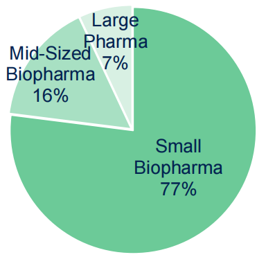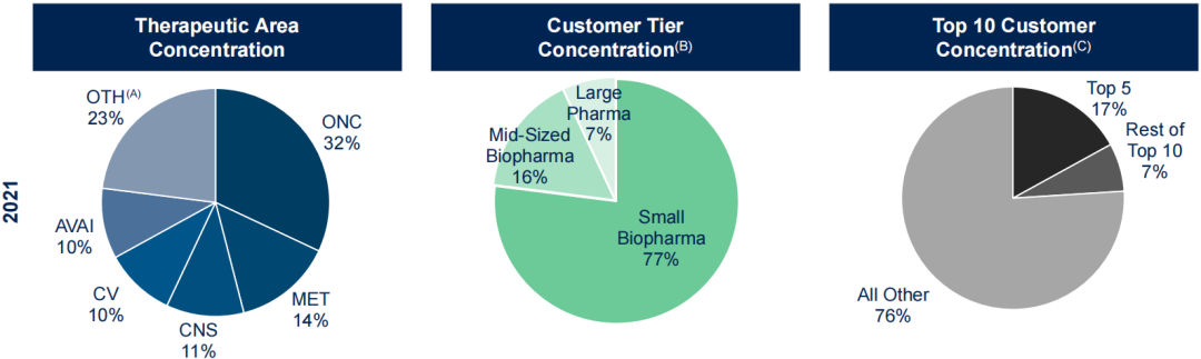 - 按客户类别分,小型生物制药公司占77%,中型生物制药公司16%,大型制药公司占7%;