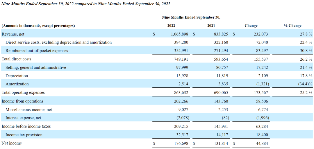 Medpace年报数据(2021年-2022第三季度)