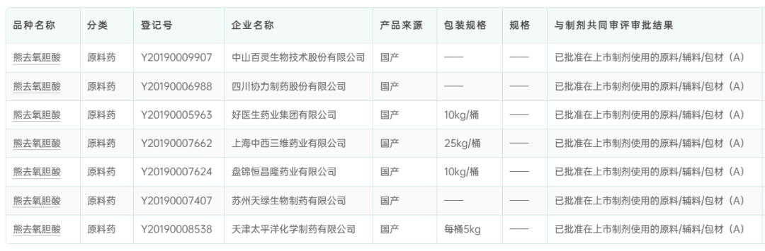 据药融云数据显示,国内熊去氧胆酸原料药已经获得批文的公司有7家,分别是: