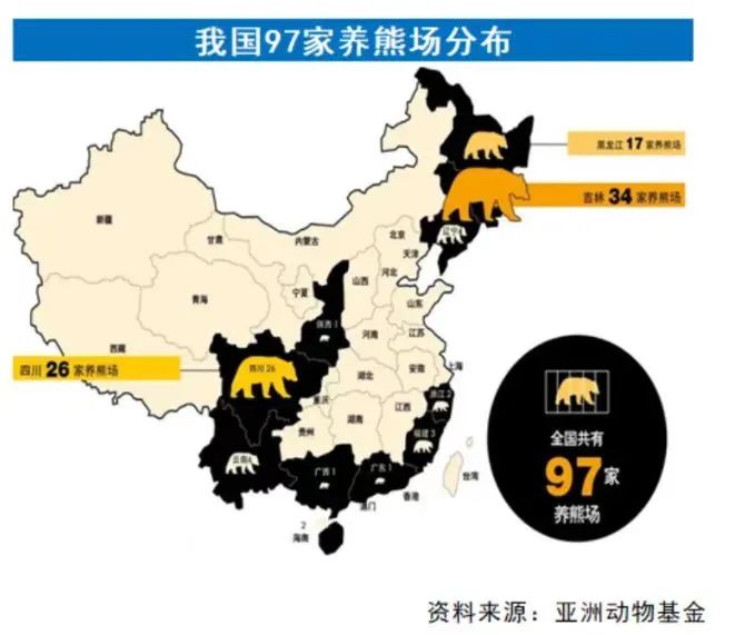 据估计,我国目前的野生和家养熊分别有1万多头,大型养殖场一般取胆汁熊的数量占其种群数量的70%左右,国内可采胆汁黑熊大约在6000-8000头,每年熊胆粉总产能为30吨—35吨[4]。