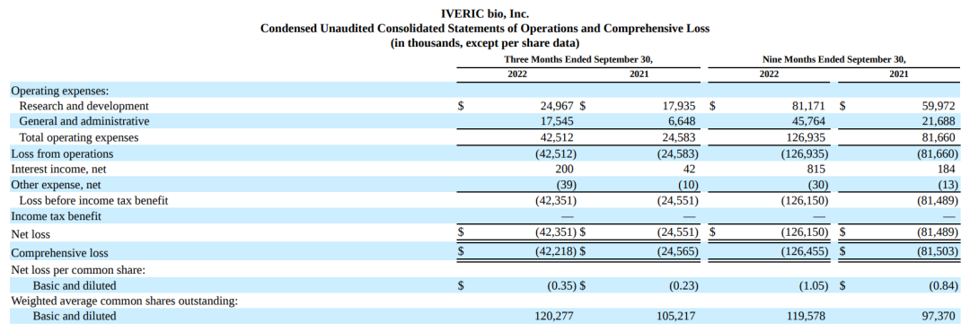 由于Iveric Bio没有产品被批准销售,故不会收到与产品相关的任何收入。2021年全年该公司净亏损$1.15亿,而2020年这一数据为$8454.7万。截至2021年12月31日,该公司现金、现金等价物和可供出售证券总额为$3.82亿,没有债务。