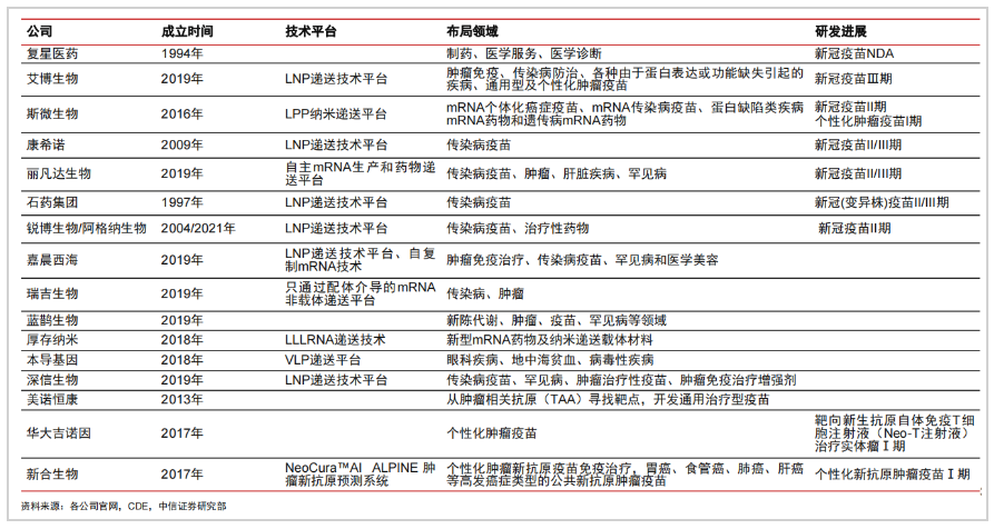 除此之外,我国布局mRNA疫苗研发企业还有深信生物、智飞生物、石药集团、康希诺等。