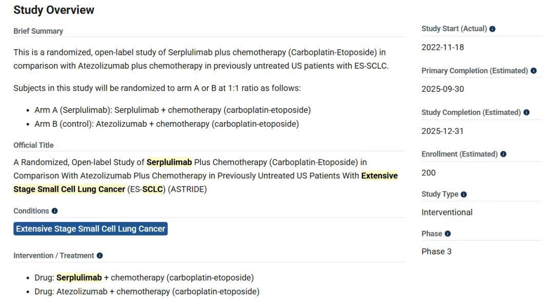 FDA作为全球药品监管灯塔,H药去年提交欧盟上市申请并于今年2月获批之后,复宏汉霖便正式加速了H药在FDA的注册冲锋,在联合化疗一线治疗广泛期SCLC的适应证上,其美国单一市场的桥接试验到今年九月已完成近200人入组,这也是当前在美国入组最多的小细胞肺癌临床试验。